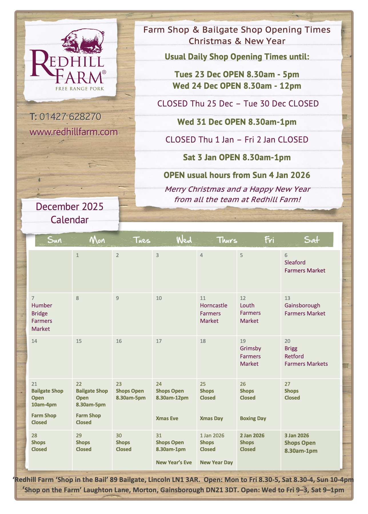 Dates for 2025: Not at this Farmers Market please visit our 'Shop in the Bail' round the corner LN1 3AR.